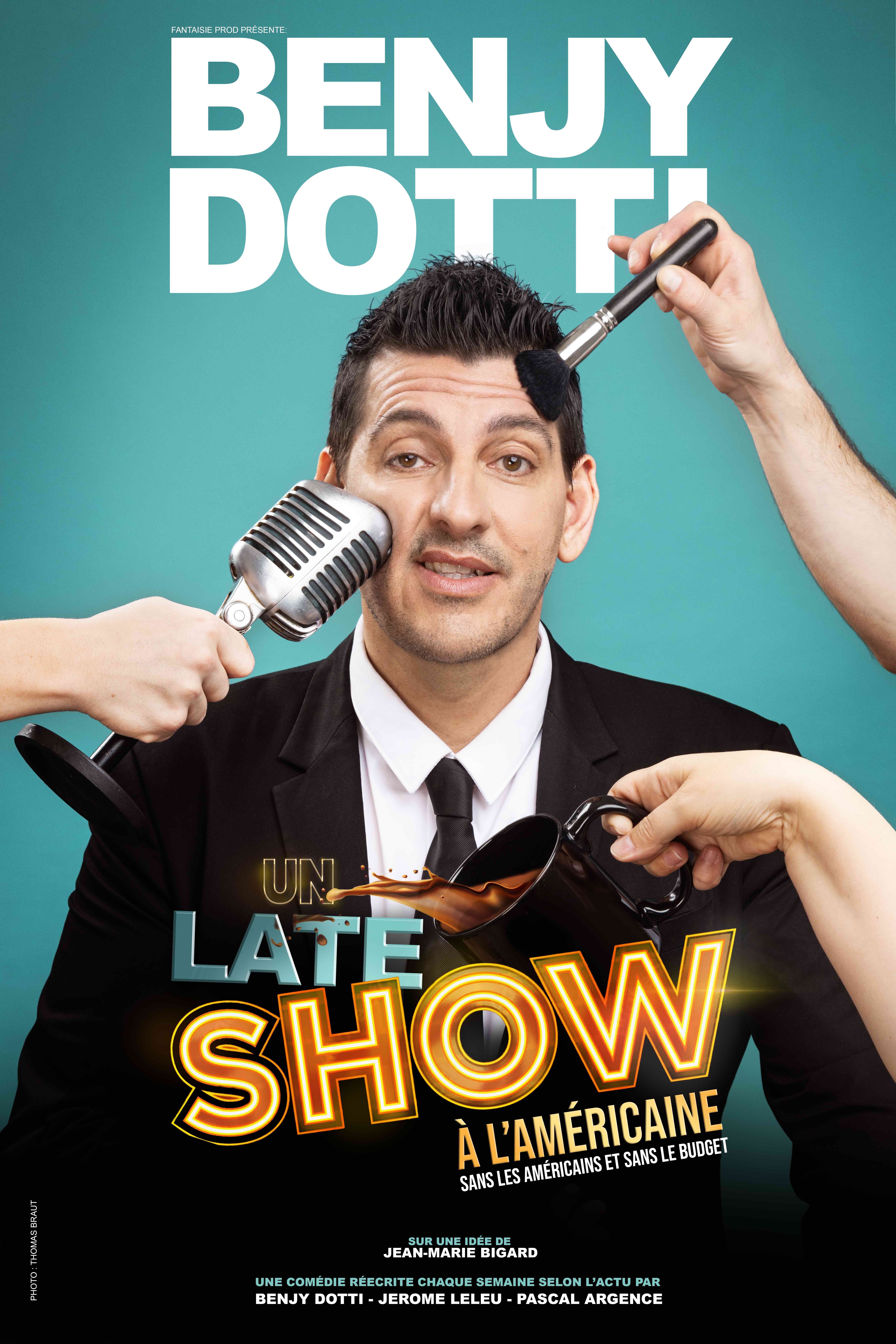 Presque à la manière d'un Jimmy Fallon, Benjy Dotti nous présente son late show à l'américaine, au programme il caricature l'actu, les peoples, les politiques...